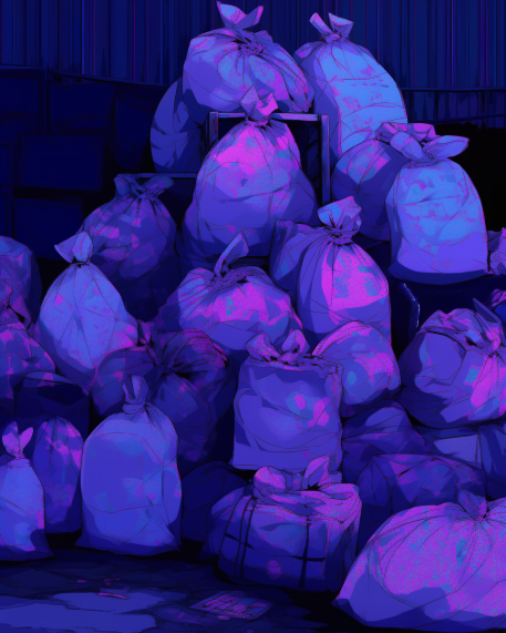With the use of glitch, pixel and messed up anime AI aesthetics GOMI evokes chaotic web native artworks. Something apparently low quality that one could find in cryptic sub-reddits and 4chan.